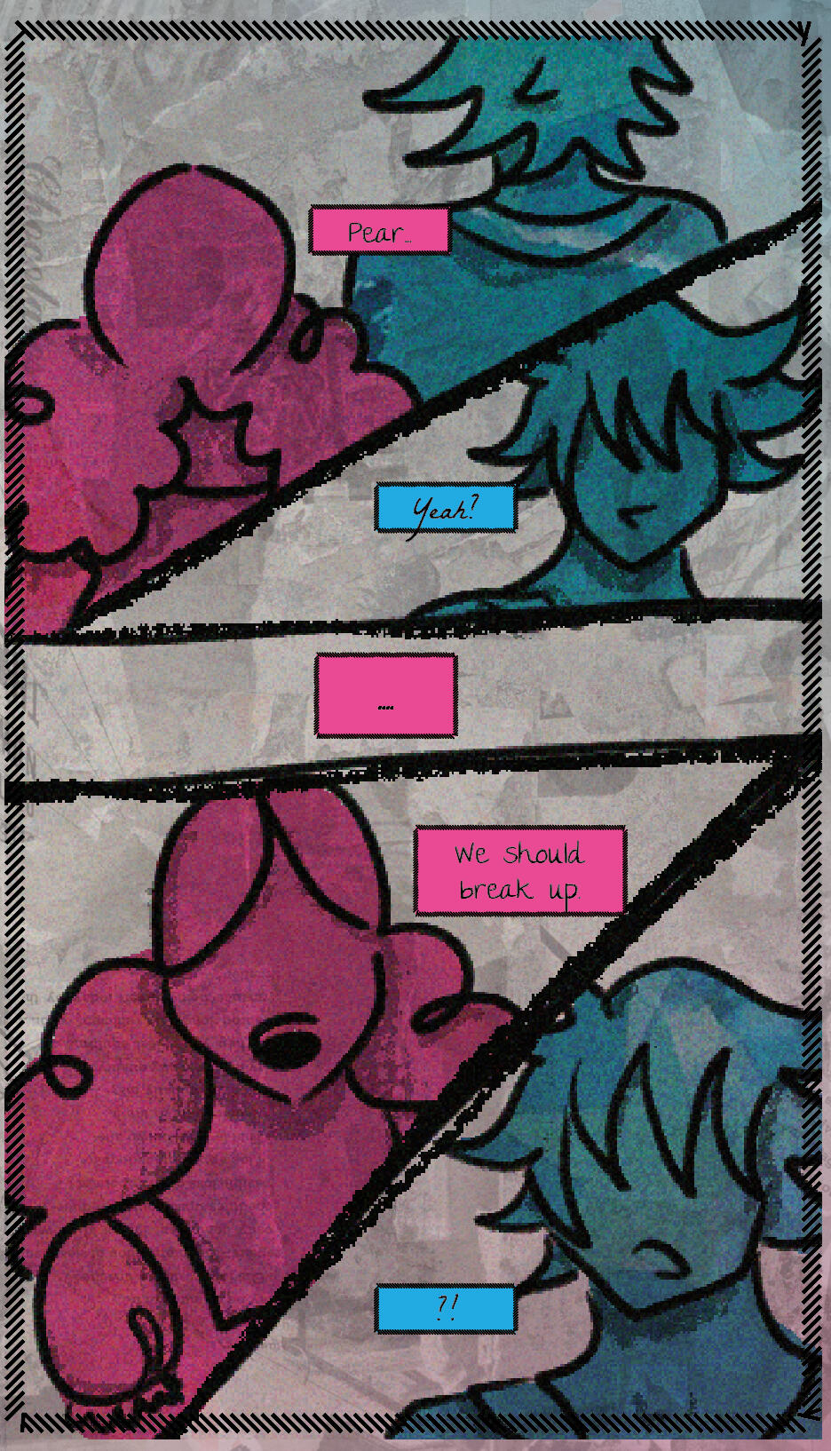 [recommended to experience on desktop]Help indigo and ryan with their super important investigation!their friends pear and blossom have just broken up and they're trying to put the pieces together but... they're a tad biased.can you help out? you can put everyone's perspective together!